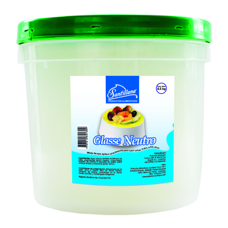 Descripción: Es una cubierta transparente de azúcar y gelificantes de alta calidad en una amplia gama de colores y sabores. Permiten conservar la frescura de las frutas, la apetitosa apariencia y decoración de sus tortas, postres, ponqués y productos de panificación ya que inhibe la accion natural oxidante del aire. Ideal para productos en vitrinas de refrigeración donde las corrientes frías de aire puede deshidratar los productos. Formulación y elaboración Santillana ¡